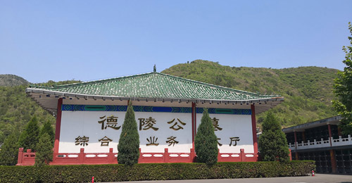地處于德陵正上方880米,昌平德陵公墓占地約300畝,左有龍山之吉祥,右傍虎山之青翠,前觀明帝陵園之勝景,后靠玉金山龍勢,恰到好處地傳承了我國傳統(tǒng)風(fēng)水中青龍、白虎、朱雀、玄武的風(fēng)水走勢。德陵公墓均為仿明代建筑,與皇陵交相輝映,渾然一體。