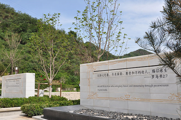 園區(qū)墓型以庭院式樹葬為主,寬敞而舒展,自然而寧靜,并有多種碑型、石雕、祭奠用品等可供選擇,構(gòu)成傳統(tǒng)習俗與現(xiàn)代理念相和諧的安葬形式。紀念林以回歸自然、綠化環(huán)境為主旨。墓區(qū)間青石鋪路、松墻連接,花草漫地,并有紀念樹終生陪伴,逝者身后枕山而眠、依林而息,達到天人合一的理想境界。