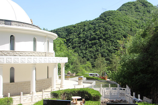 承澤園坐北朝南,位于三山環(huán)抱之間,墓地旁邊有小溪環(huán)流??可?、龍山、虎山坐落有序;一里外罩山擁有重重護衛(wèi)(同時具有朝山和安山)。無論朝向還是山形,都呈現(xiàn)少有的龍脈之像。承澤園門前矗立9米高攀龍珠護衛(wèi),相當于北京南城的雁墩。墓區(qū)明堂寬敞,山環(huán)水繞,盡顯承前啟后風格。前有官帽山罩穴,右側(cè)聳立著九公山長城紀念林的標志建筑“九公祭堂”,堂內(nèi)是中國首創(chuàng)的聲、光、電創(chuàng)新祭拜堂,用現(xiàn)代技術(shù)手段全方位的展示逝者華彩人生,讓客戶在祭祀過程中,慰藉逝者,體驗生命,感悟人生。