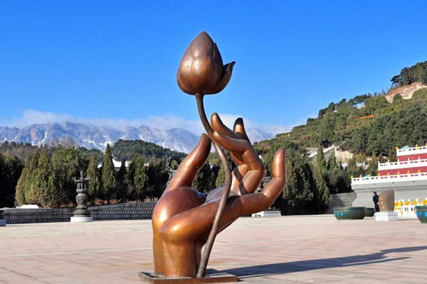 這幾件寶像價值連城,其藝術價值和收藏價值不可估量。三世金佛,每尊高4.2米,重3.9噸,采用銅鑄而成,三尊大佛中鑄入黃金650兩,白銀4000兩,表面全部貼金,栩栩如生,金碧輝煌;另有千手觀音、四大天王、滴水觀音、十八羅漢等近萬尊佛像;建有通過雕塑藝術展現(xiàn)的十二生肖石像生、地藏王菩薩比丘像、西方極樂世界接引圖、十八羅漢四件被故宮博物院館藏設計小樣的藝術珍品;孝經(jīng)碑、風水池、長生殿、孔子紀念園、神路、金水橋、善逝八塔、放生池、金寶塔、隆福閣、天津大悲禪院塔院、唐山大地震紀念館等景點,將現(xiàn)代園林藝術設計和傳統(tǒng)文化完美結合,也都具有很高的旅游觀賞價值。