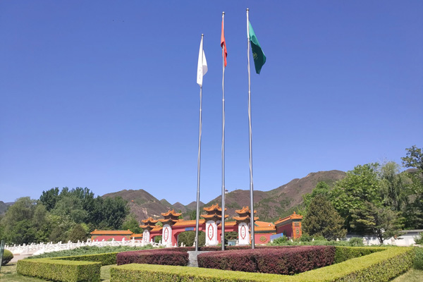 天壽陵園周邊有明十三陵皇家龍脈庇護,是與皇家龍脈一脈相承的花園式墓園。陵園背靠蒼茫巍峨的天壽山,前臨玉帶河潺潺流水,右為千年古剎和平寺,左邊是生長千年古檀樹的檀峪村,此地形地貌與古代帝王陵寢選址的“四象俱全”原則高度契合,堪稱現(xiàn)代墓園選址的典范。